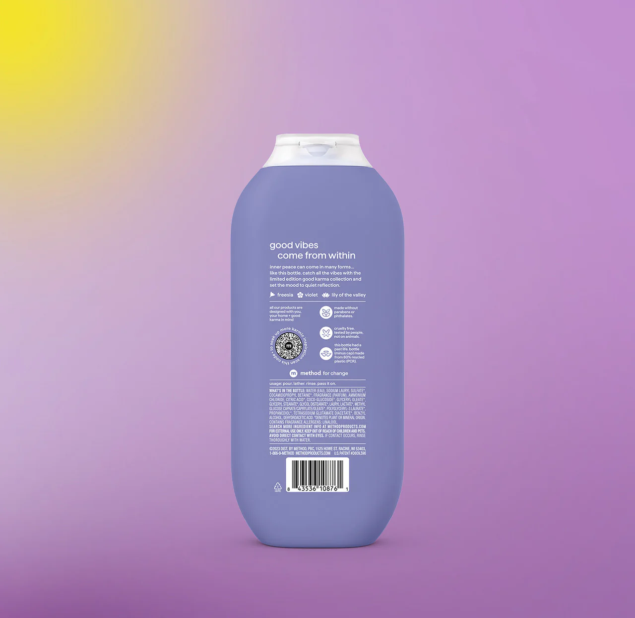 - 18 oz. gel liquid body soap with notes of freesia, violet + lily of the valley.